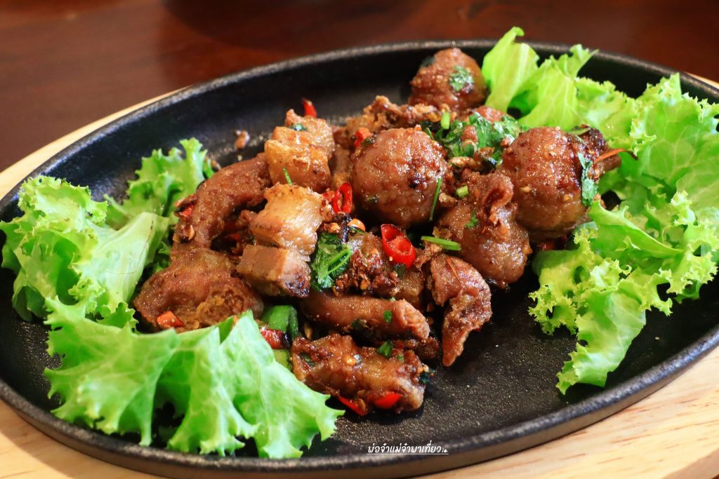 และทีเด็ดคือหมูกรอบคั่วพริกเกลือ ผัดเข้าพริกเกลือถึงใจ